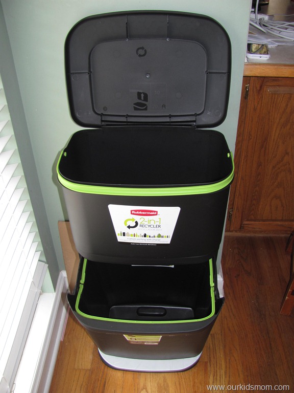 Set up was super easy and we were ready for rubbish. We used the top portion for recycling and the bottom for regular trash. After using the 2-in-1 recycler for a week just about everyone in the house had an opinion. My oldest has the distinct pleasure of bringing the trash and recycling down to the garage when the containers are full in the kitchen. His opinion was that they filled up way too fast (and with six of us, we were emptying the containers daily). He did like the handle on the top portion as he carried the entire part down to the garage and dumped it with ease. The younger kids liked how easy they were to open and use. The fact that the lower portion tilts out to open was a huge novelty that they did over and over again. I am usually the one that lines the empty cans with bags and I liked how the handles on the lower portion held the trash bag in place. The overall opinion in the house… everyone liked the 2-in-1 recycler. Their main complaint was that it filled too quickly… which is understandable in our house. I would recommend it but also include the fact that if you have a larger family you will be emptying it out often.