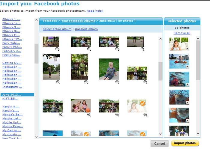 I was thrilled with how easy snapfish was to use. Because a majority of my favorite photos are on Facebook already, all I had to do was to get everyone to agree on which photos, select and upload.