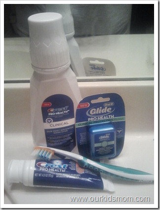 I have been using Crest Pro-Health tooth paste, Oral-B Glide Pro-Health floss, Crest Pro Health Clinical mouth wash and an Oral-B toothbrush.