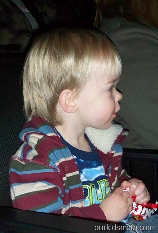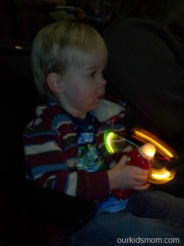 We arrived about 20 minutes early and made it through security check within minutes. Thank goodness, too… Mother Nature had decided she wasn’t ready to share spring with us just yet! We found our seats, brought out the light toys and got ready for the show!