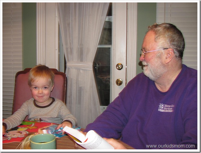 My Dad is staying with us for observation after his surgery and his spunk is returning. Here is Ethan’s reaction to one of Papa’s silly comments.