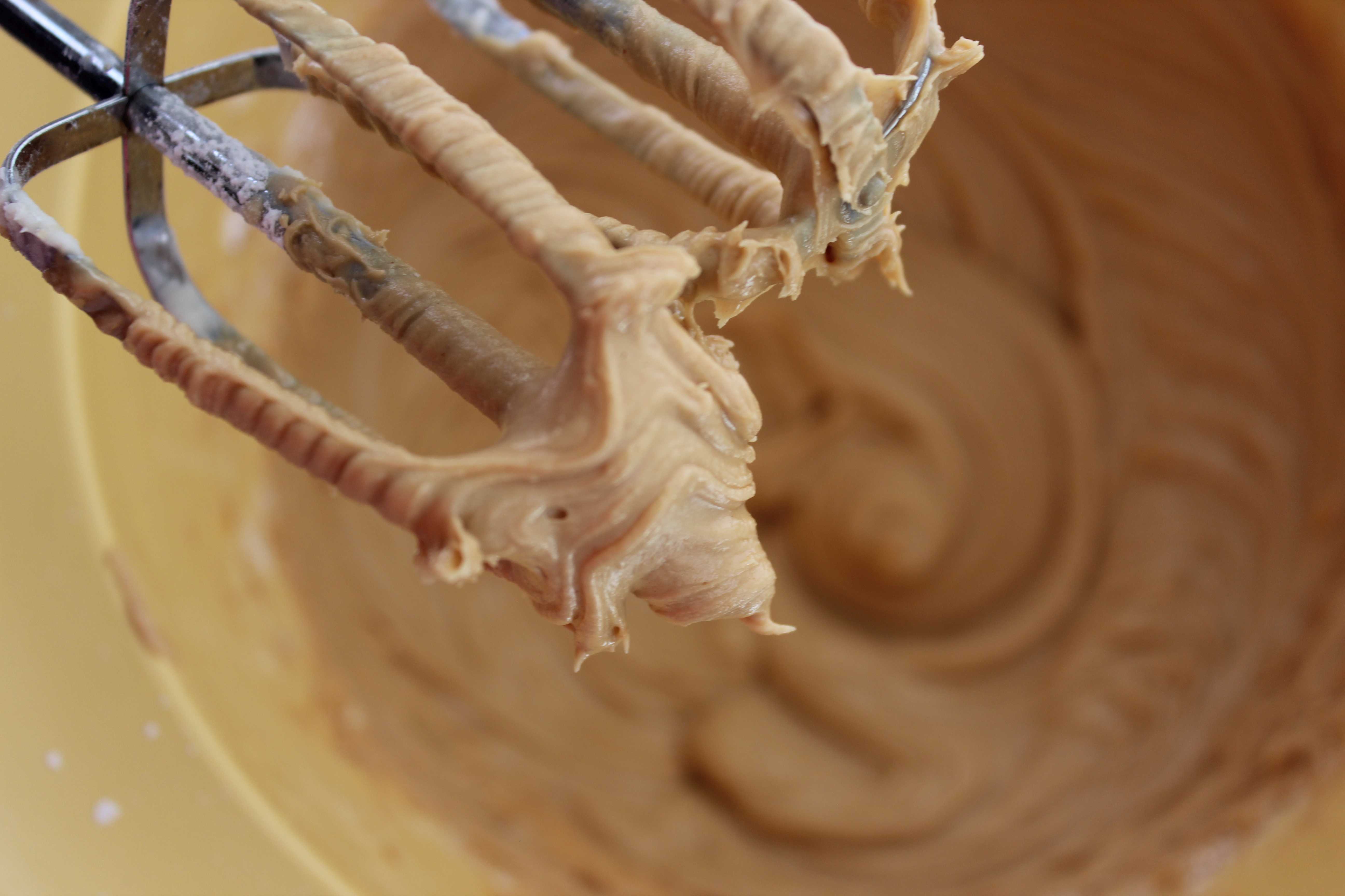 - Cream together the butter and peanut butter.