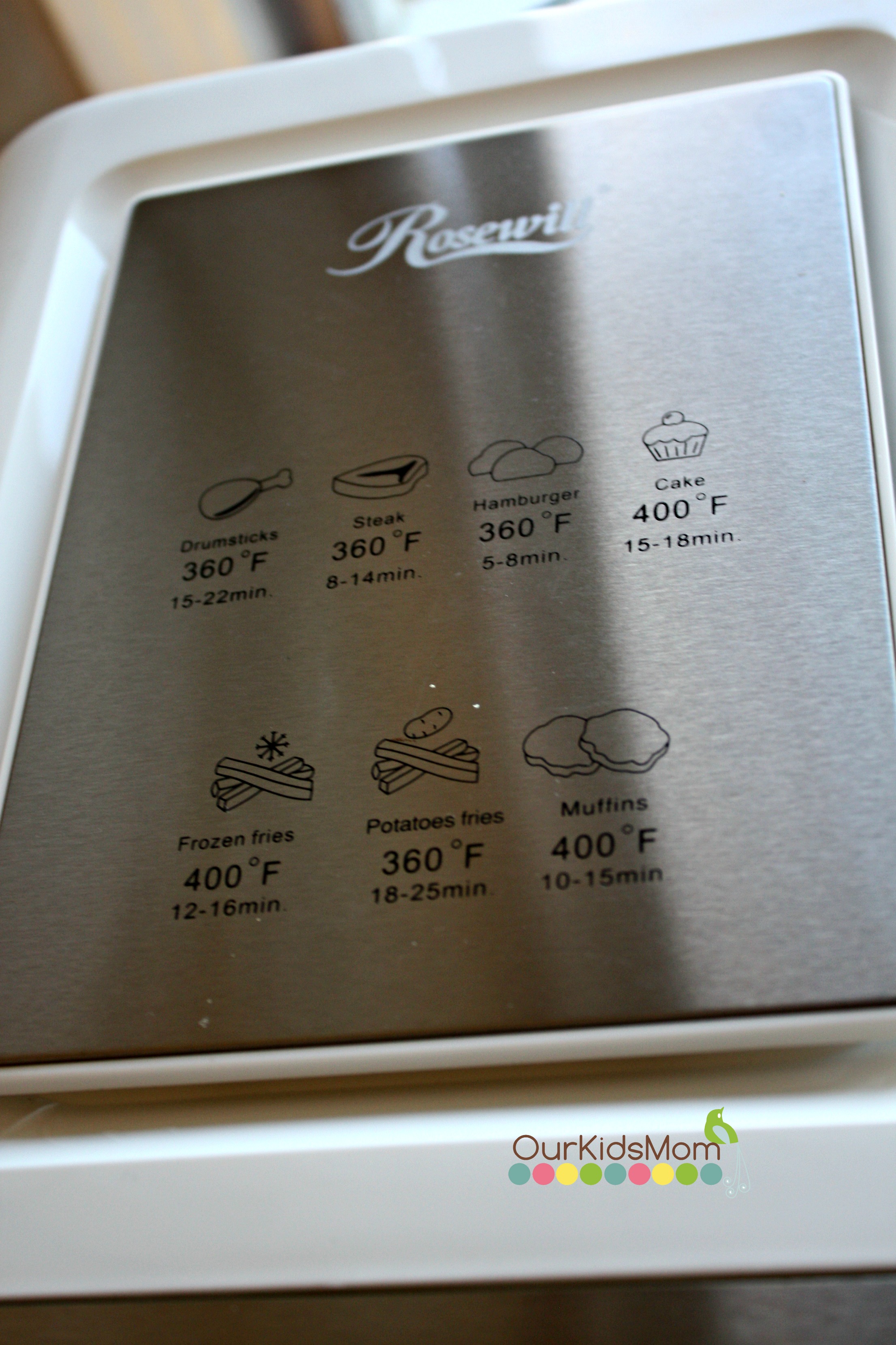 If you need a quick reference, on the top of the Air Fryer there is a little metal plate that gives you a quick reference for the more common items you may be cooking.