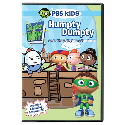 Super Why, Princess Presto, Wonder Red and Alpha Pig are back with four new-to-DVD adventures! Join Super Why and his pals as they continue to teach children the fundamentals of reading through interactive adventures in classic fairytales including Humpty Dumpty, Cinderella, Pinocchio and Rumpelstiltskin. From Out of the Blue Enterprises, PBS KIDS and Paramount Home Entertainment, comes SUPER WHY! HUMPTY DUMPTY & OTHER FAIRYTALE ADVENTURES, the latest installment in the award winning franchise “SUPER WHY!” The DVD includes four exciting and educational adventures, interactive games, music videos, resources for parents, printable activities and coloring pages.