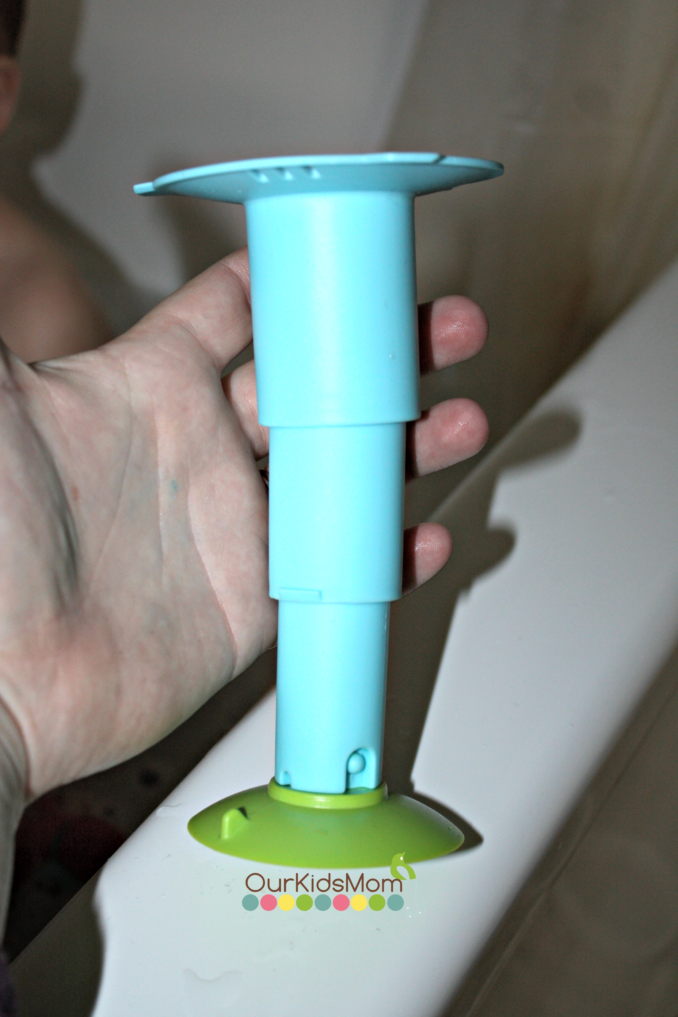 Yookidoo Stack ‘N’ Spray Tub Fountain is a floating island like base that has a water pump in it that takes your bath water and pumps it up the middle to send a steam of water shooting straight up in the air.