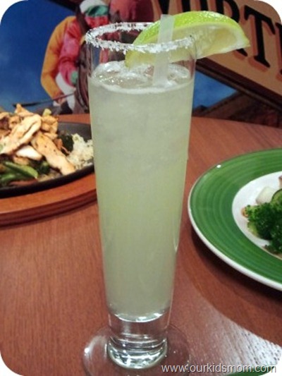 For dessert we were surprised with the new SkinnyBee Margarita. I’ve never realized how many calories are in alcoholic drinks! Applebee’s had this special lower calorie mix developed for their U550 menu. This generously sized glass is around 100 calories and is made of Hornitos 100% Agave tequila. The only way I can think of making this even more fabulous would be to made a frozen version (please Applebee’s??).