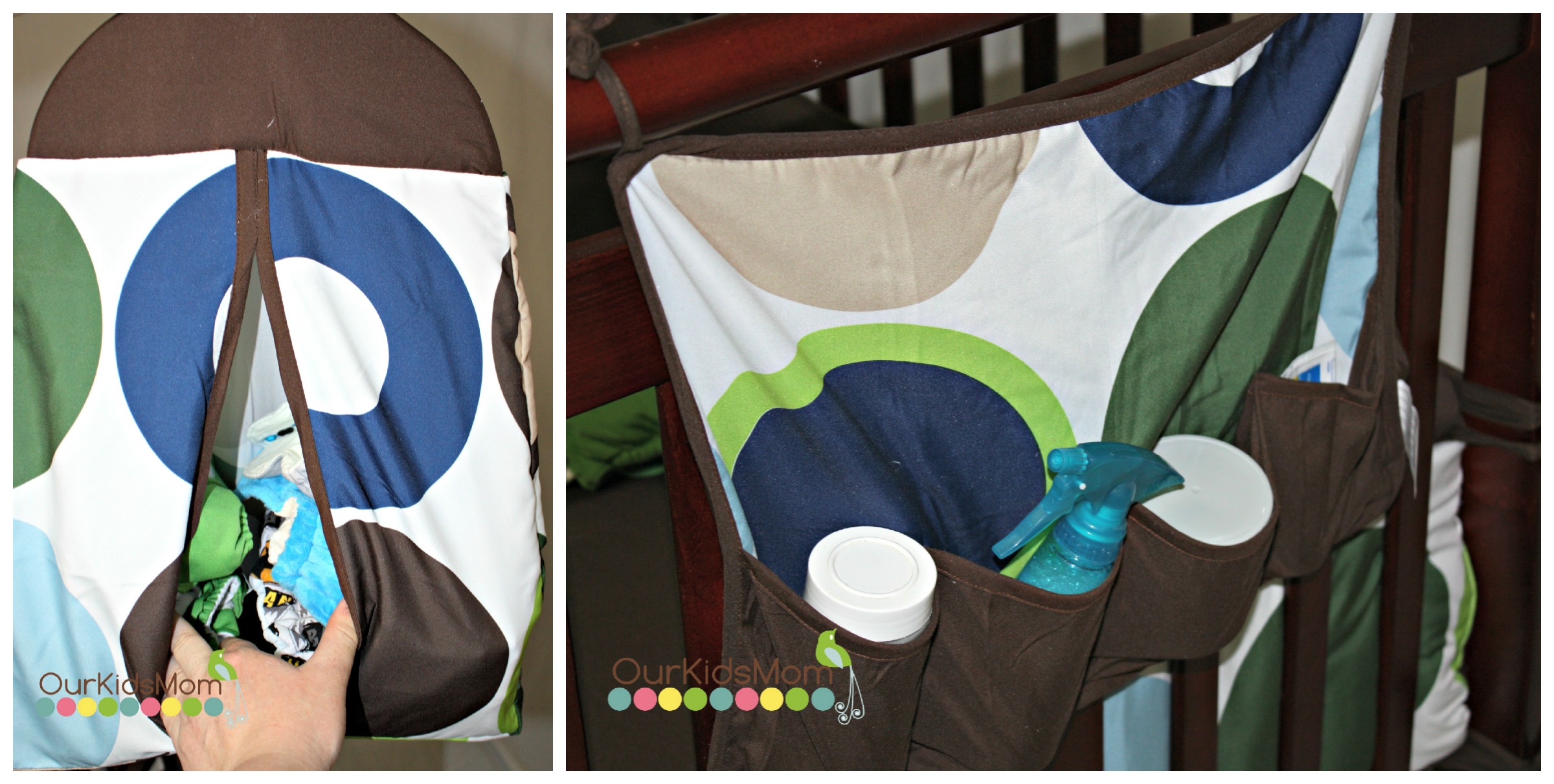The diaper stacker holds 2 stacks of my cloth diapers or a couple stack of disposables. As for the toy bag, I like that it can be a multi-functional holder. You can place small toys inside but what I like to use it for is my diaper creams, soothers, or other little items that always seem to get lost.