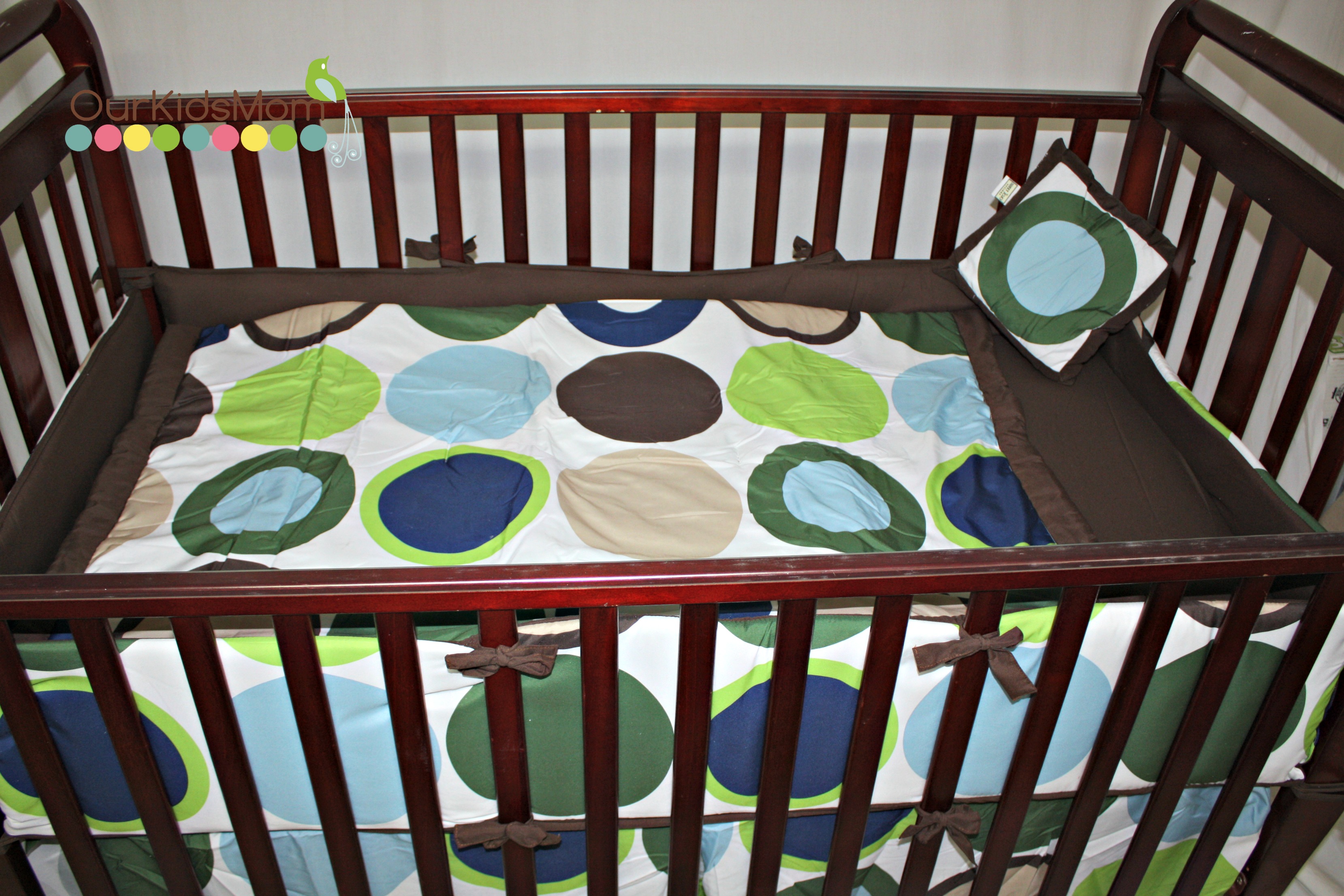 I had it narrowed down to a couple different choices out of the Modern Crib Bedding From Beyond Bedding categories. My husband had been beside me during my entire search to give his opinion… and soon we both finally came to a agreement on the Designer Dot Modern Baby Boys Bedding by Sweet Jojo Designs 9 piece Crib Set. The big modern dots combined with the great coordinating colors in this pattern, I just fell in love.