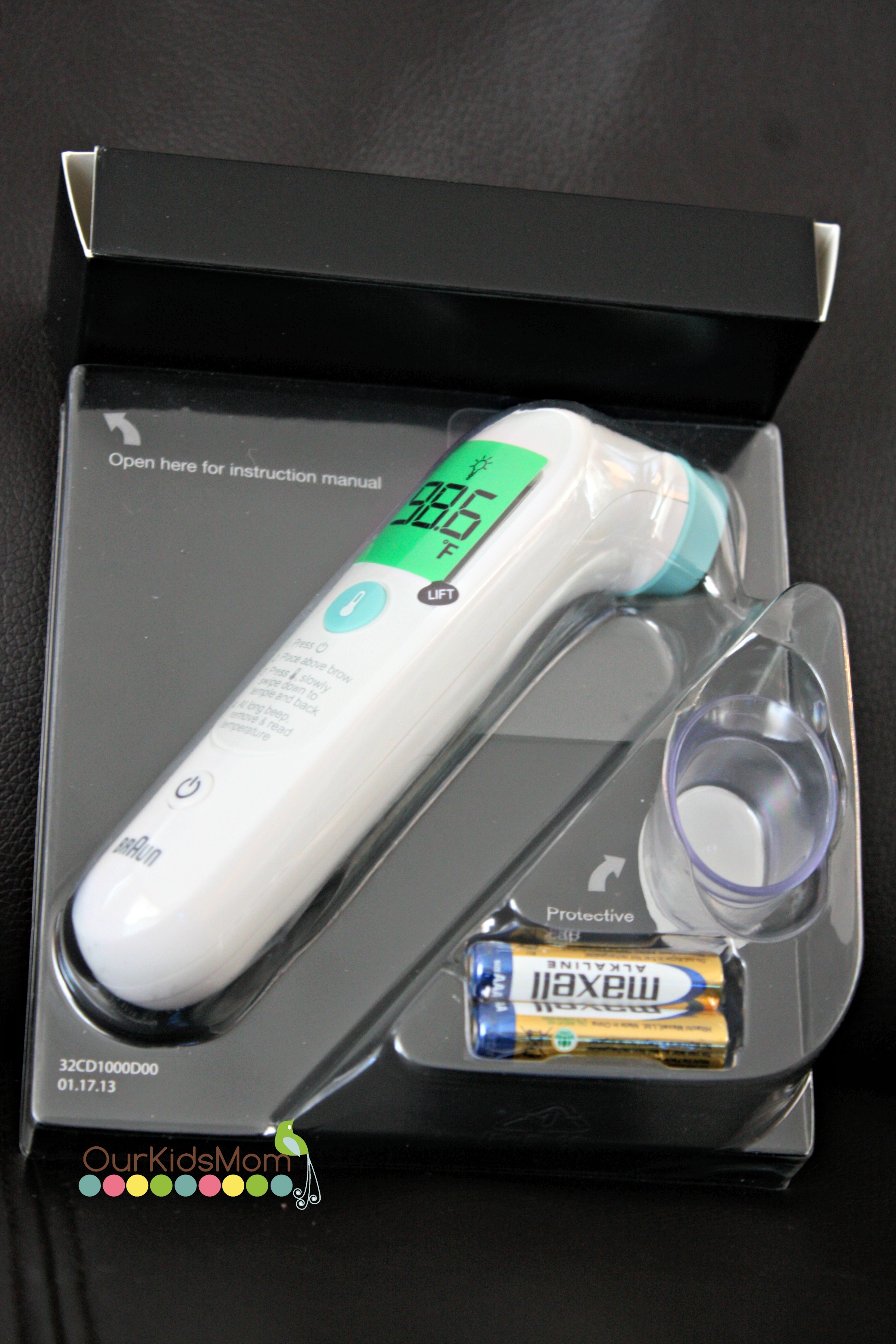 Cold and flu season is upon us and I think that a good trustworthy thermometer on hand is a necessity. Braun sent me their Forehead Thermometer for a review. The box says that it is easy to use and reads in seconds… that is a must on my list when looking for a thermometer. It is hard for me to get my little ones to sit still long enough to let me take their temperature for a accurate reading.