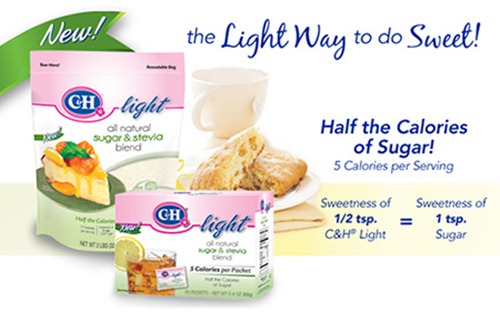 C&H® Light is an all natural pure cane sugar and stevia blend with half the calories of sugar. That’s over a 350-calorie savings in each cup! By blending pure cane C&H® Sugar with a naturally sweet extract from the stevia plant, we have created a delicious sweetener with no artificial ingredients. C&H® Light is the ideal sweetener — a perfect sweet taste and half the calories of sugar!