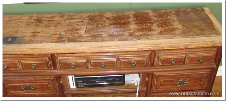 The people we purchased the dresser from had already started stripping it with hopes of refinishing it.