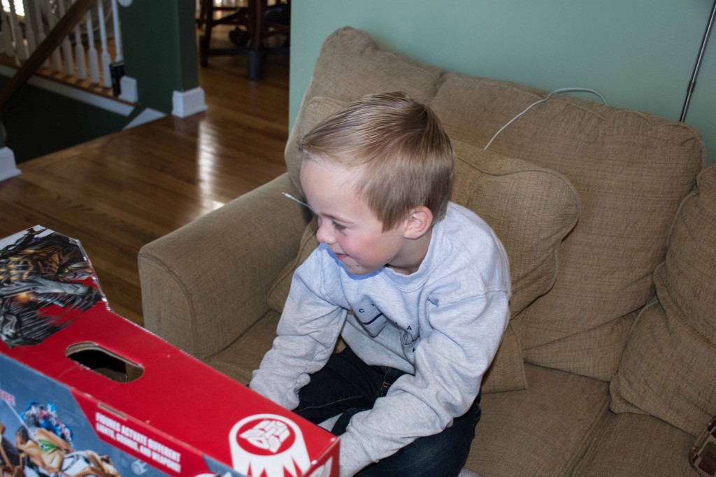 Both kiddos were over the moon excited to play with their new toys. Ethan was a lucky duck… his toy came with batteries pre-installed. He was off in his own little world transforming back and forth while Emma and I headed to the kitchen to install batteries.