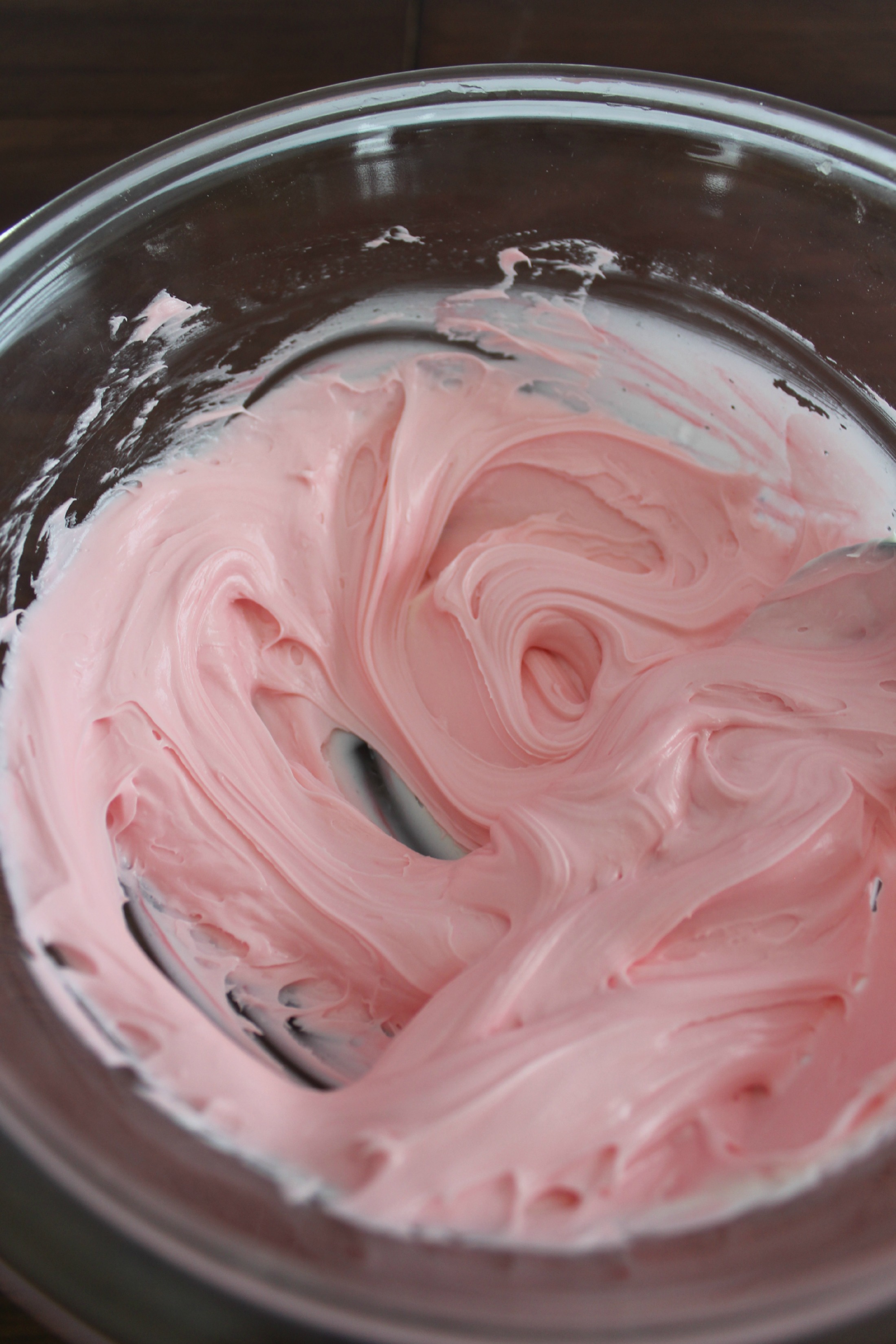 - In medium microwavable bowl, stir frosting and 1 to 3 drops pink food color until well blended. Microwave uncovered on High 10 to 15 seconds or until soft but not translucent.