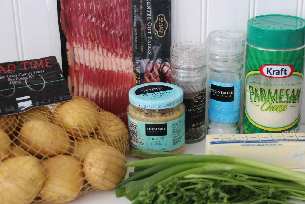 This sounds like perfection. Potatoes, garlic, and Parmesan are some of my favorite things. Bacon is just the cherry on top. The recipe is also easy enough that even I could do it.