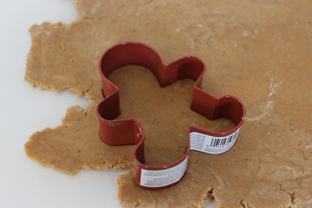 - Cut out gingerbread men and place 1″ apart on prepared sheet.