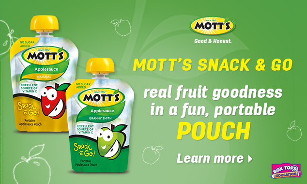 Mott’s® Snack & Go applesauce pouches are the same applesauce you love and trust for the active kid on-the-go. It’s the convenient way for me to give my kids the real fruit goodness I expect from Mott’s – anytime and anyplace.