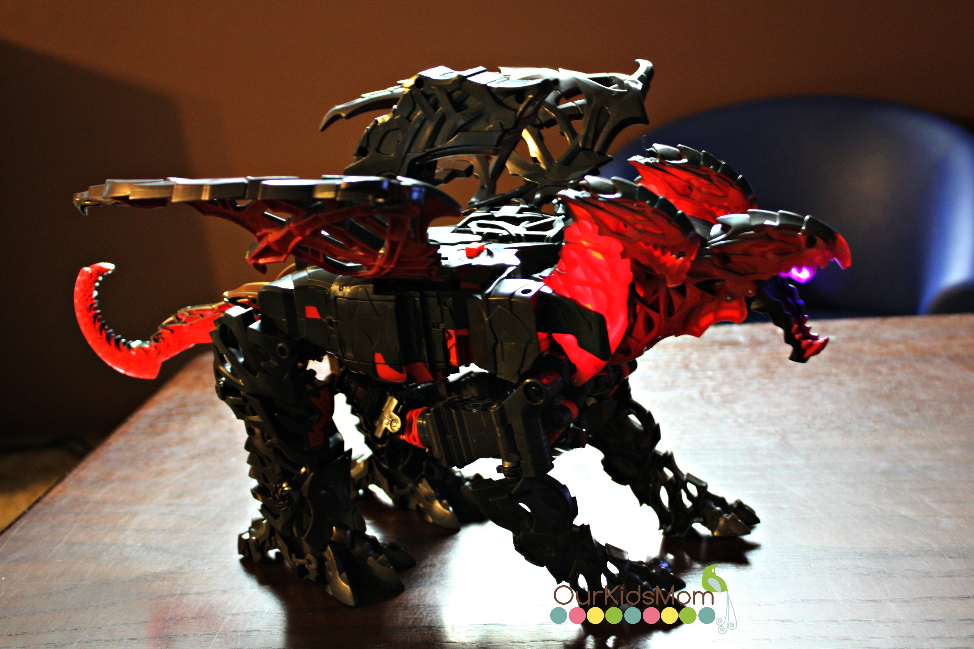 Christmas is coming up sooner then later and one of the hot topics around our house between my boys is anything to do transformers. My oldest is 9 and my youngest is 4. There are few things that they both really enjoy doing together do to their interested and age gap, but playing transformers is one thing will play for hours with together. I was excited to hear Hasbro was sending me Transformers Typticon and Transformers the last knight mega 1-step turbo changer Dragonstorm. I love watching my kids play with transformers but lets face it, I’m just a “mom” and I’ll apologize ahead as I don’t know all the proper transformer lingo.