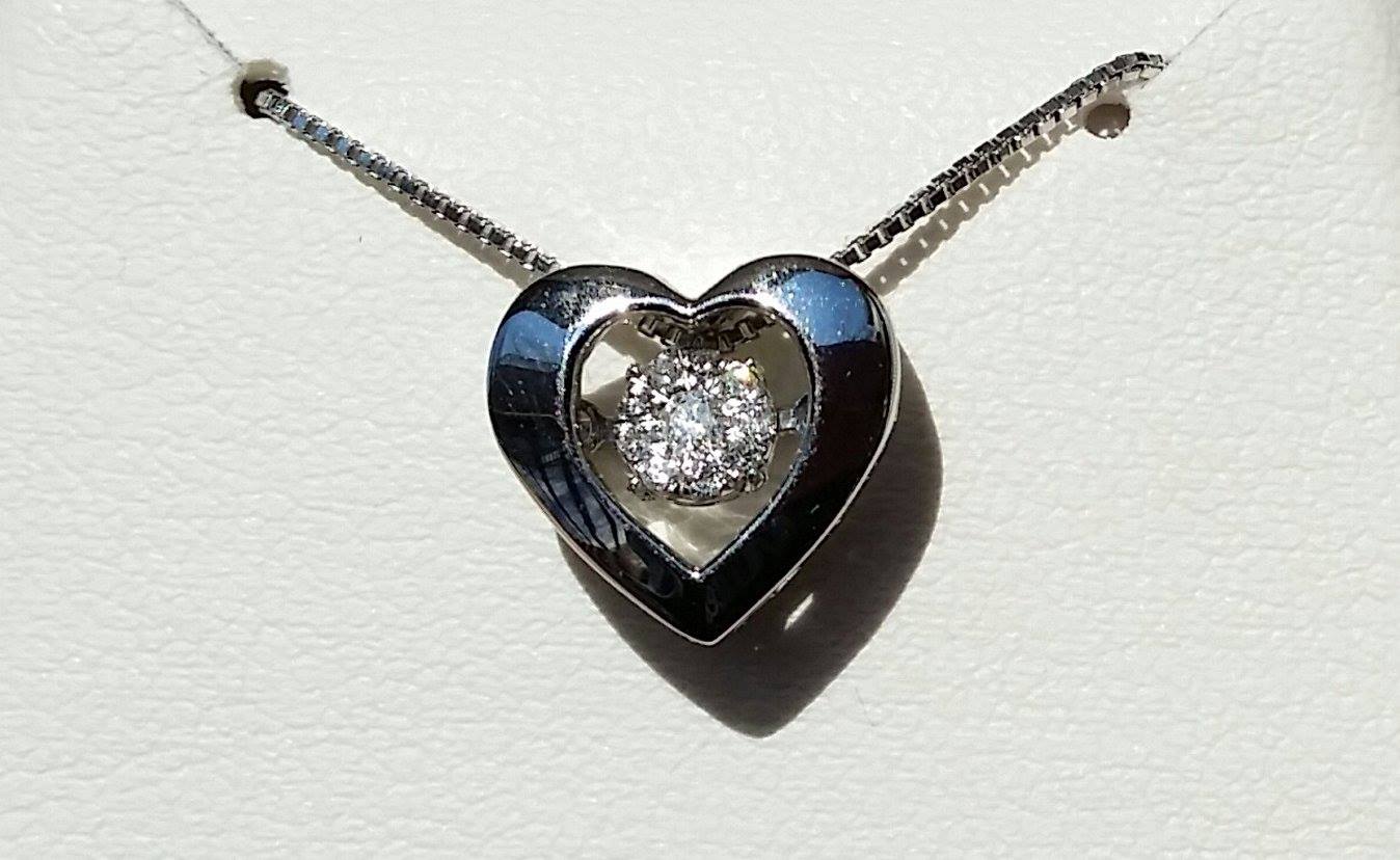 The cluster of diamonds consist of 1 round brilliant cut center diamond accent that is surrounded by 9 round brilliant cut diamond accents. These are somehow hinged inside the pendant and ever so slightly move. So just the beat of your heart makes the diamonds gently move adding a shimmer and gleam to your neck. Check out the lab diamond prices and features before buying.
