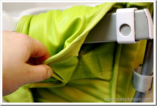 Ease of cleaning is super important to me. The leatherette cleans with a simple wipe down and it’s back to looking new again. When it’s time for a deep cleaning the whole leatherette cover is easily removable. Joovy thought of everything and made all of the fasteners velcro… it’s fast and easy to remove and put back on. The cover can be washed in the washing machine, cold wash on gentle, and then hung to dry. This is so convenient and handy when you have your hands full with little ones.