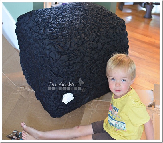 The box came and we were surprised by how heavy it was. I knew the comfy sack was going to be on the large side, but I guess I’m used to traditional bean bags being light. You can see just how large the box was… both my kids fit nicely it.