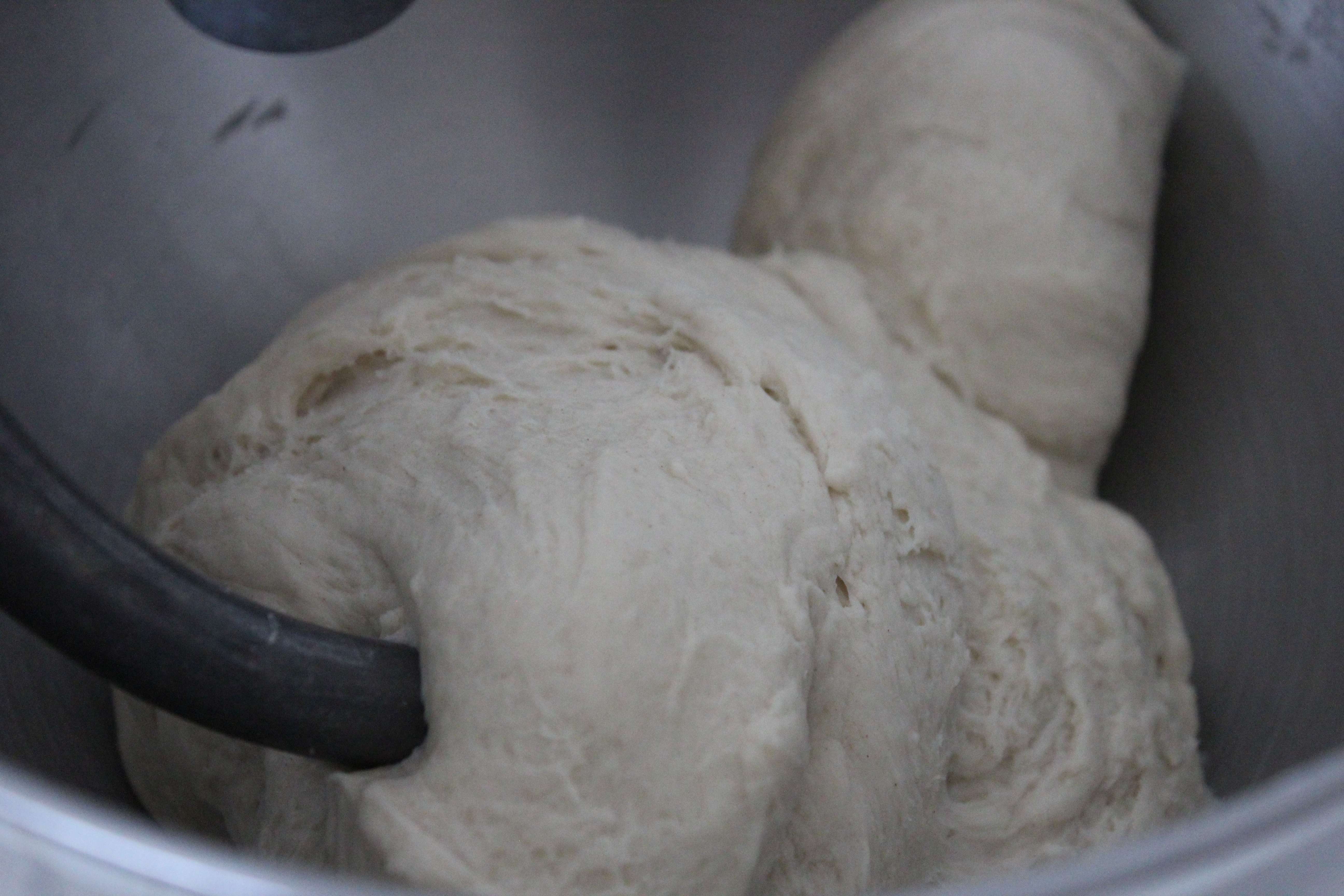 - Knead for 5 minutes in mixer or 10 minutes by hand.