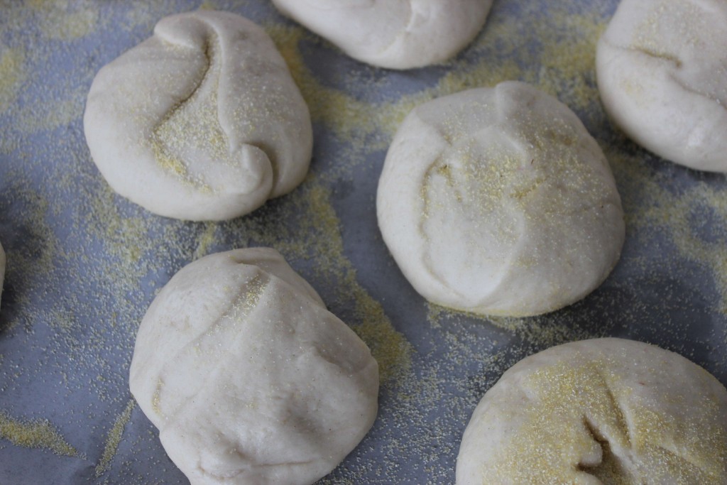 - Place each on the wax paper and dust tops with corn meal as well.