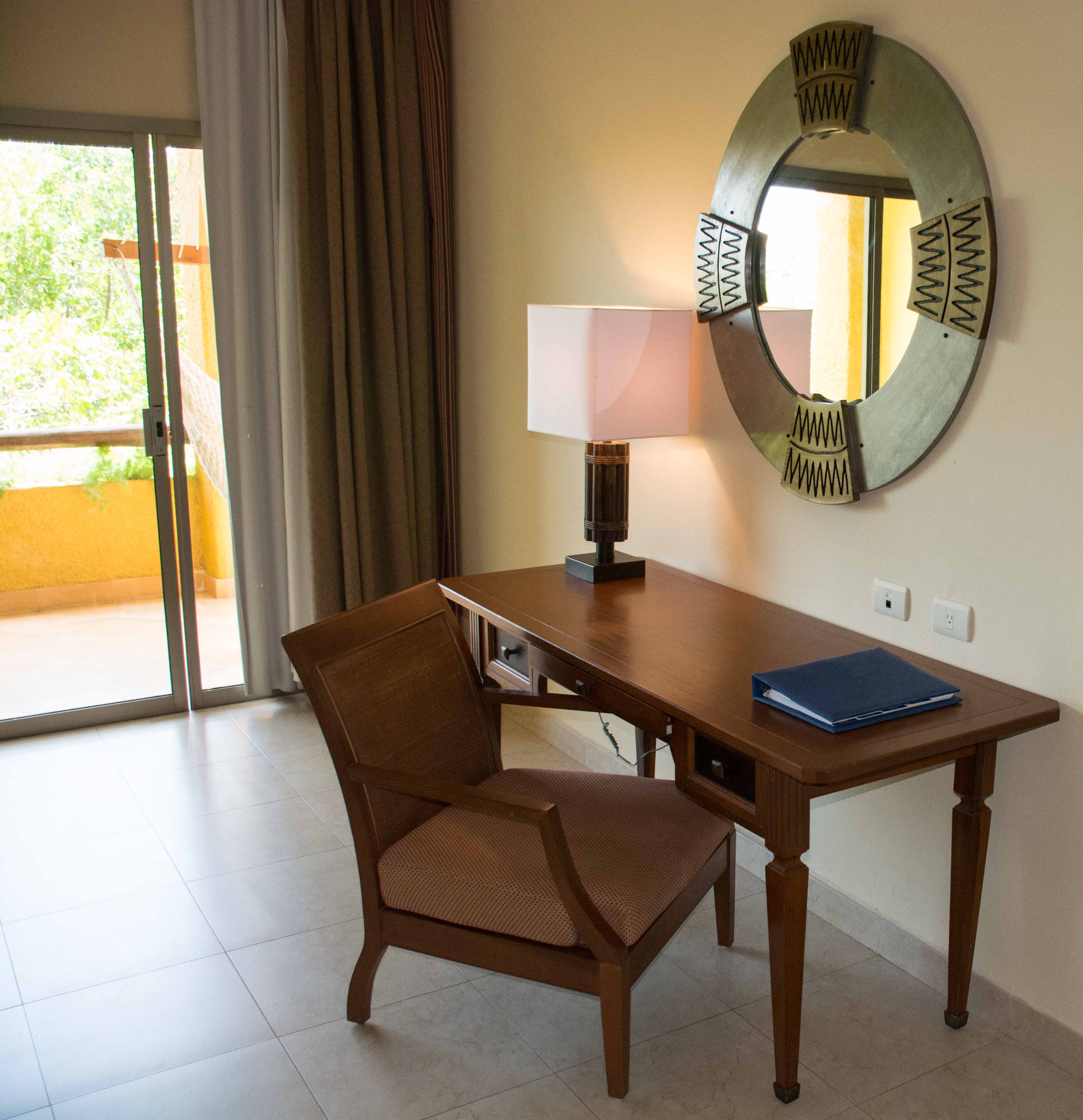 On the other side of the sitting room you will find the desk/chair that you are wanting to avoid on such vacations ( 😉 ). Unfortunately I did need to plug my laptop in to do a little work during my stay, but because of the free wifi at Paraíso Maya I was able to get online and get it done rather quickly. This would also be a good area for my younger children to sit and enjoy a snack at. Avoiding floors full of crumbs is a typical activity on our family trips.