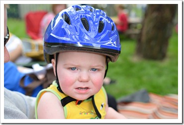 I then went on a hunt to find her baby brother, Liam (1 y/o). Again I had the same experience putting it on… it was super easy to adjust and once on it didn’t slide around. Now his Mom & Dad can take him on tandem bike rides knowing his noggin is protected.