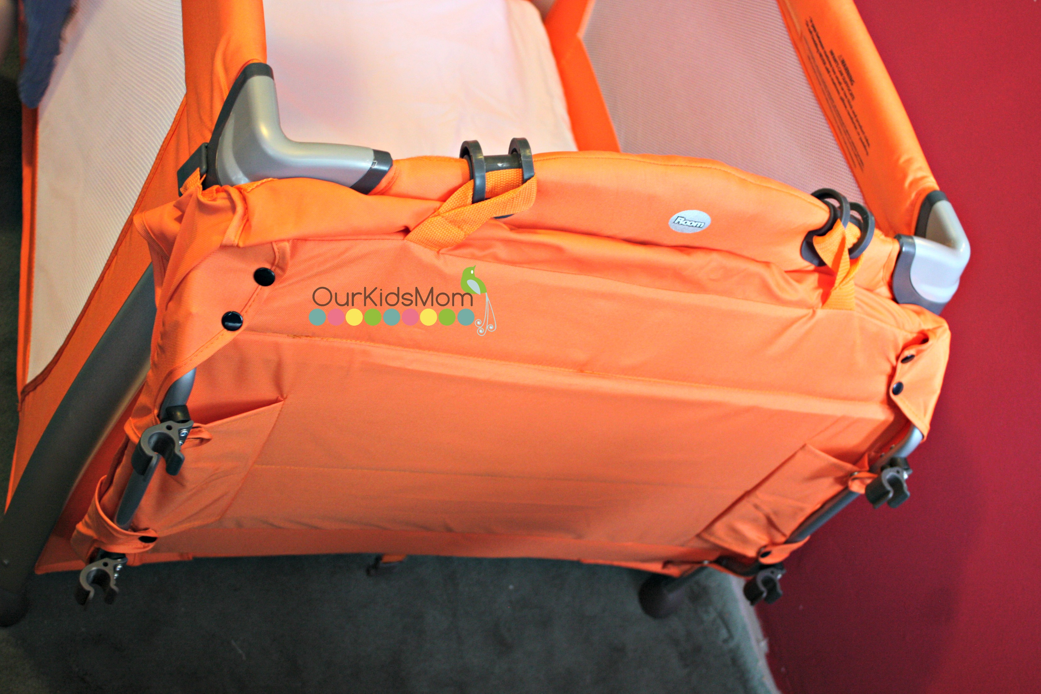 Joovy has included two unique features in their Room playard. The first is a built in nightlight that is set to work inside the bassinet or playard. I personally love the nightlight, it’s just soft enough that it doesn’t interfere with my sons sleeping, but yet gives off enough light that I can check in on him in the middle of the night without disturbing him with a bright light.