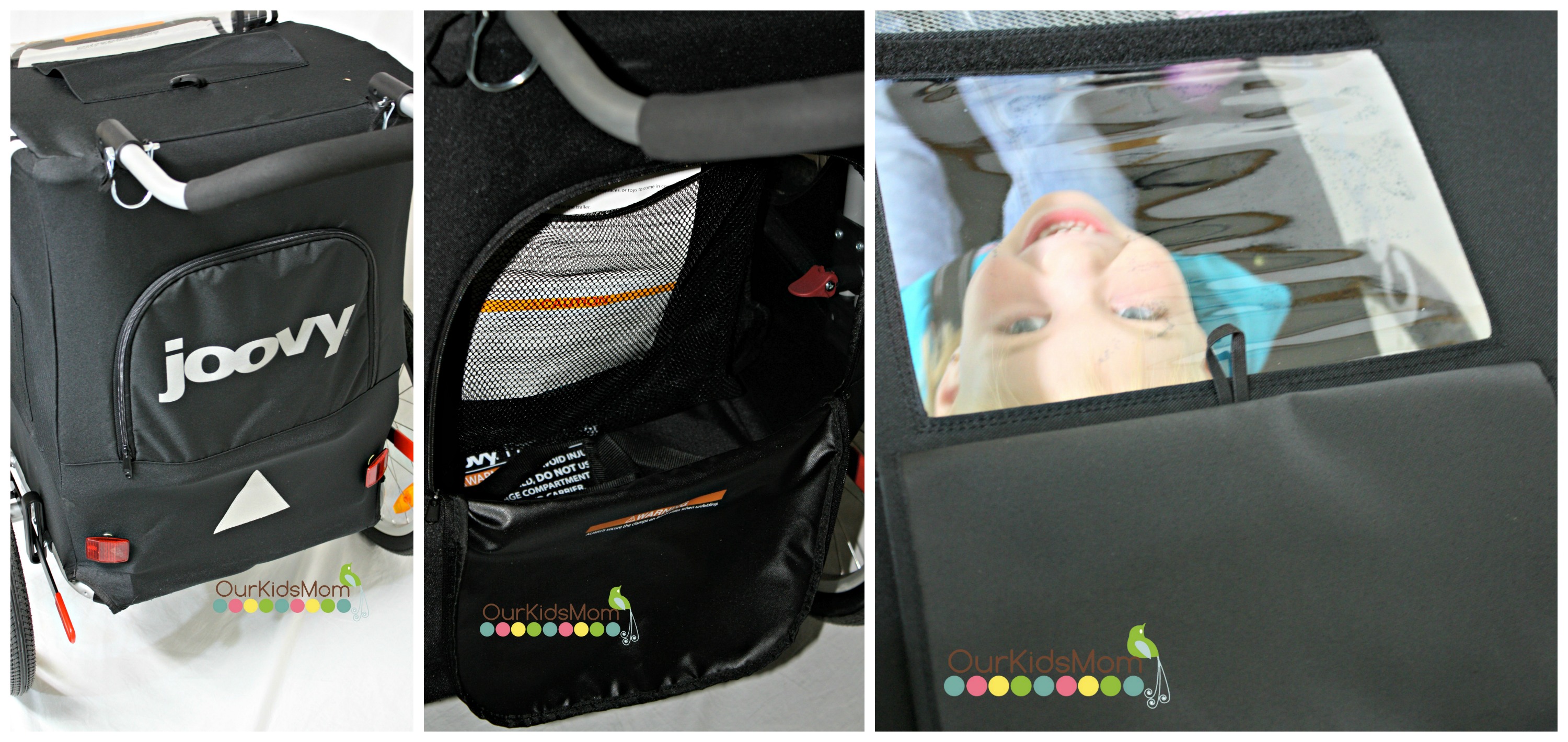 Both my 3 year old and my 5 year old love riding in it. Whether it’s my 3 or 5 year old inside there is lots of leg room for them. There are 2 little pockets inside for them to bring along a couple toys or a drink and a snack. If your child is smaller then it is a great place to store a extra soother or your keys or even a cell phone.