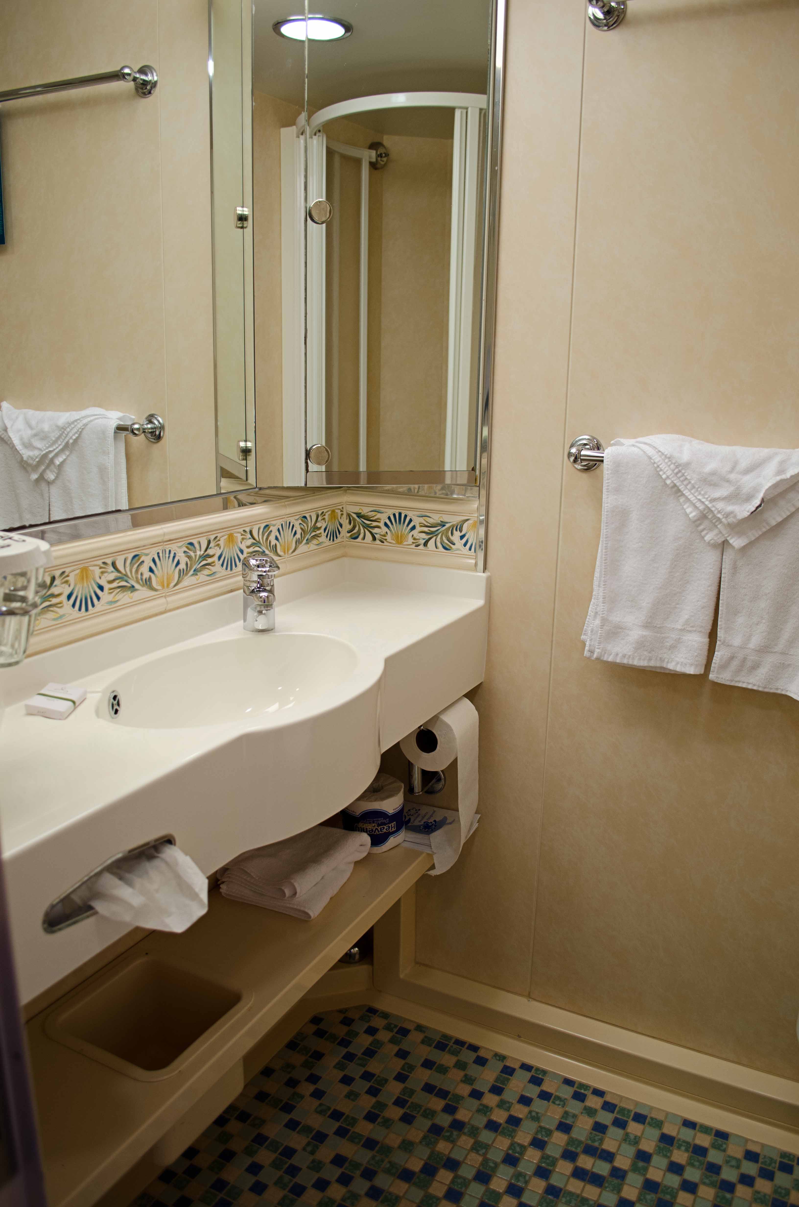 The toilet sets right next to the shower, which I found to be just a little tight. I am a bigger girl, so I run into this issue quite often though. The public restrooms around the ship seem to have a lot more room so if you need to take care of business and the room is a little tight, that’s where I’d go.