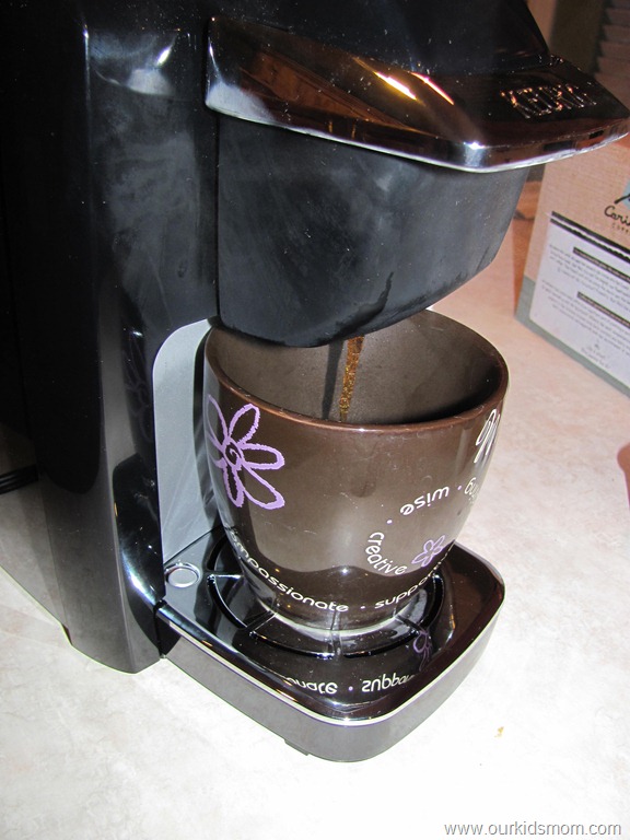 Hi, my name is Heather and I’m a coffee addict. It wasn’t until my 30’s that I developed this passion. Up to that point, I just hadn’t tried to proper blend of quality coffee, flavorings and creamers. Now my kids know that it is best to let Mommy start her coffee maker before asking for things in the morning. We have a normal sized 12 cup brewer that does a rather decent job when the three of us want some, but some mornings I really just need the one cup.