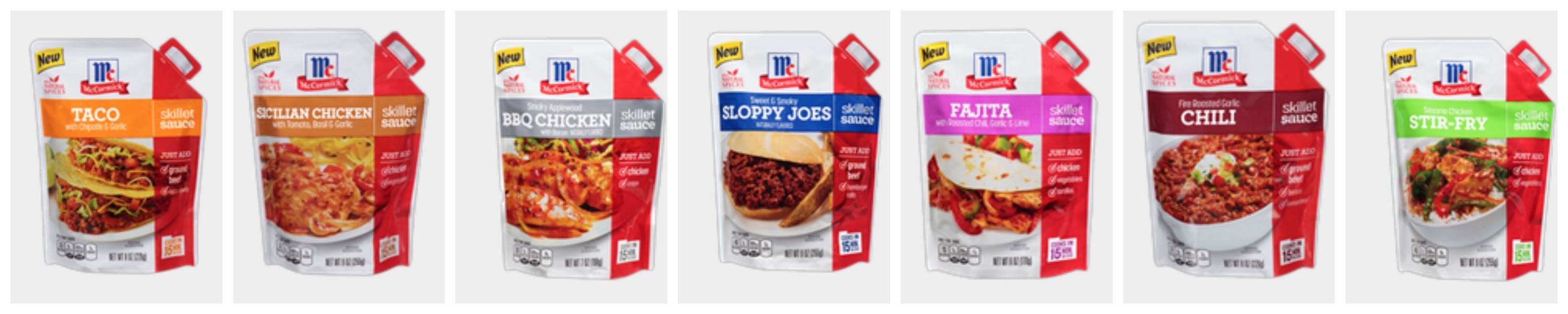 There are seven different varieties of McCormick® Skillet Sauces and each one comes with a custom recipe.