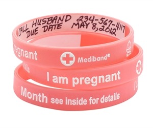 I couldn’t resist sharing some of my favorite styles from the site, though. I especially like the “I am pregnant” bands with a place to write on the inside for things like contact information and due date. There are many reasons someone with a medical issue should wear one of those, but it would be a great idea even for someone like myself without a pressing medical issue. If you were to be in an accident, you could receive the appropriate medical attention that would not harm the baby.
