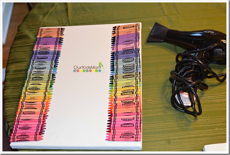 Once all of the crayons have been glued onto the canvas, you will need a hair dryer.