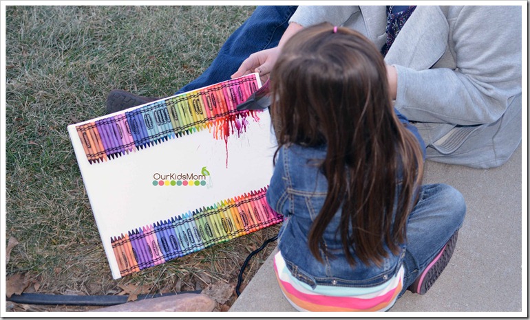 The girls took the project outside to avoid wax splatter in the house. After some direct heat the crayons began to melt!