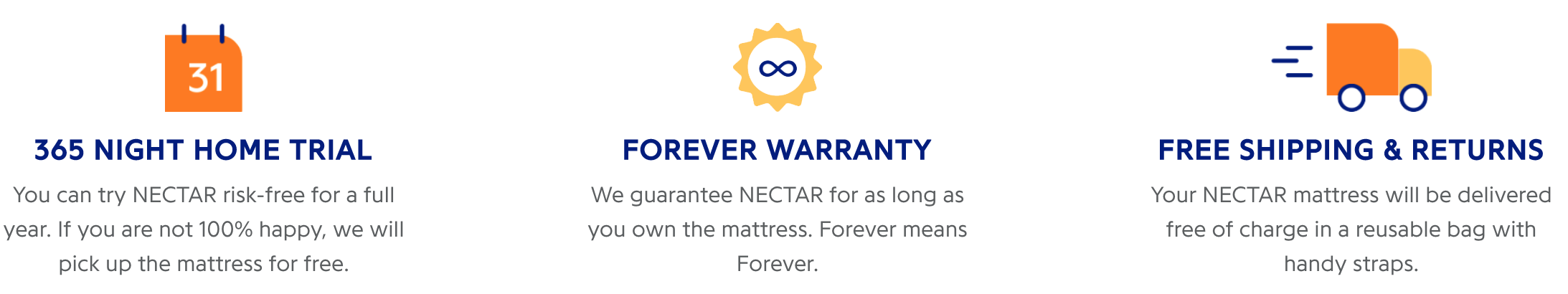 I learned that they offer a 365 day night trial and that less that fewer than 3% of NECTAR sleepers return their NECTAR.