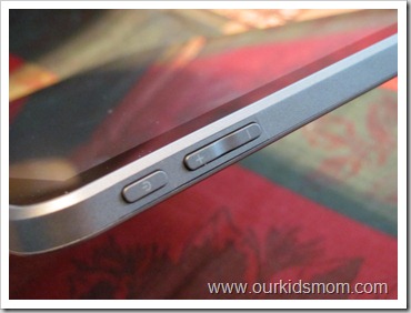 I’ve shown you the MicroSD/MMC card slot on the bottom back of the tablet, across the bottom edge is the microphone jack, AC adapter and mini USB plug slot. Across the top is the power button and volume button. It is a little slimmer design than the Premium7, which may be part of the reason I enjoy the “feel” of this tablet in my hands so much more.