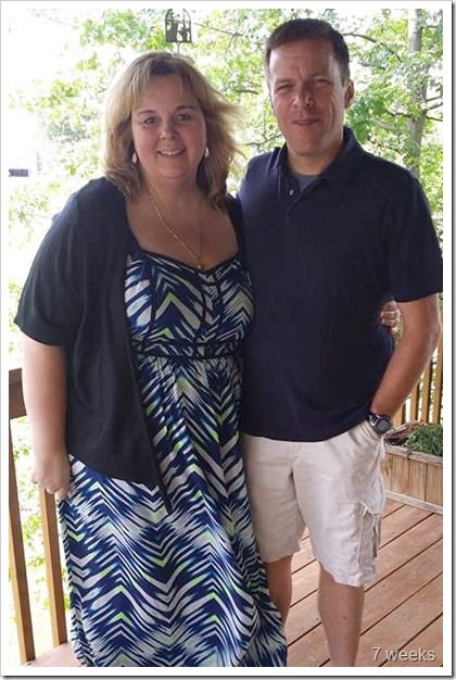 I posted the 7 week photo above on our date night via social media. Some of the comments I got back surprised me and boosted my self confidence. Someone actually told me I had to be wrong that I had only lost just under 17 pounds because there was a bigger difference. (please ignore my silly teenager photo bombing me in the “before” lol)