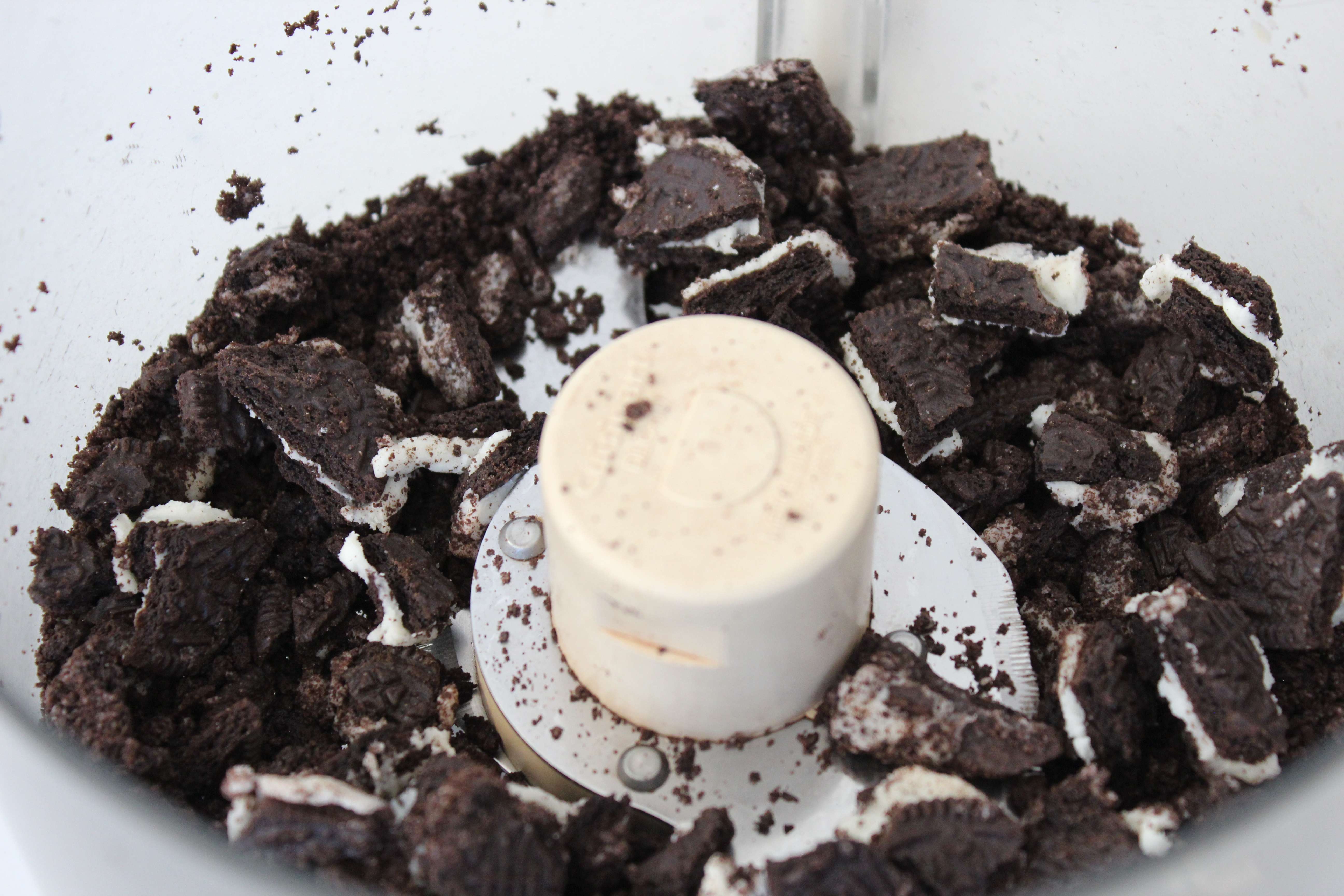 - Process Oreos in food processor until crushed into larger pieces.