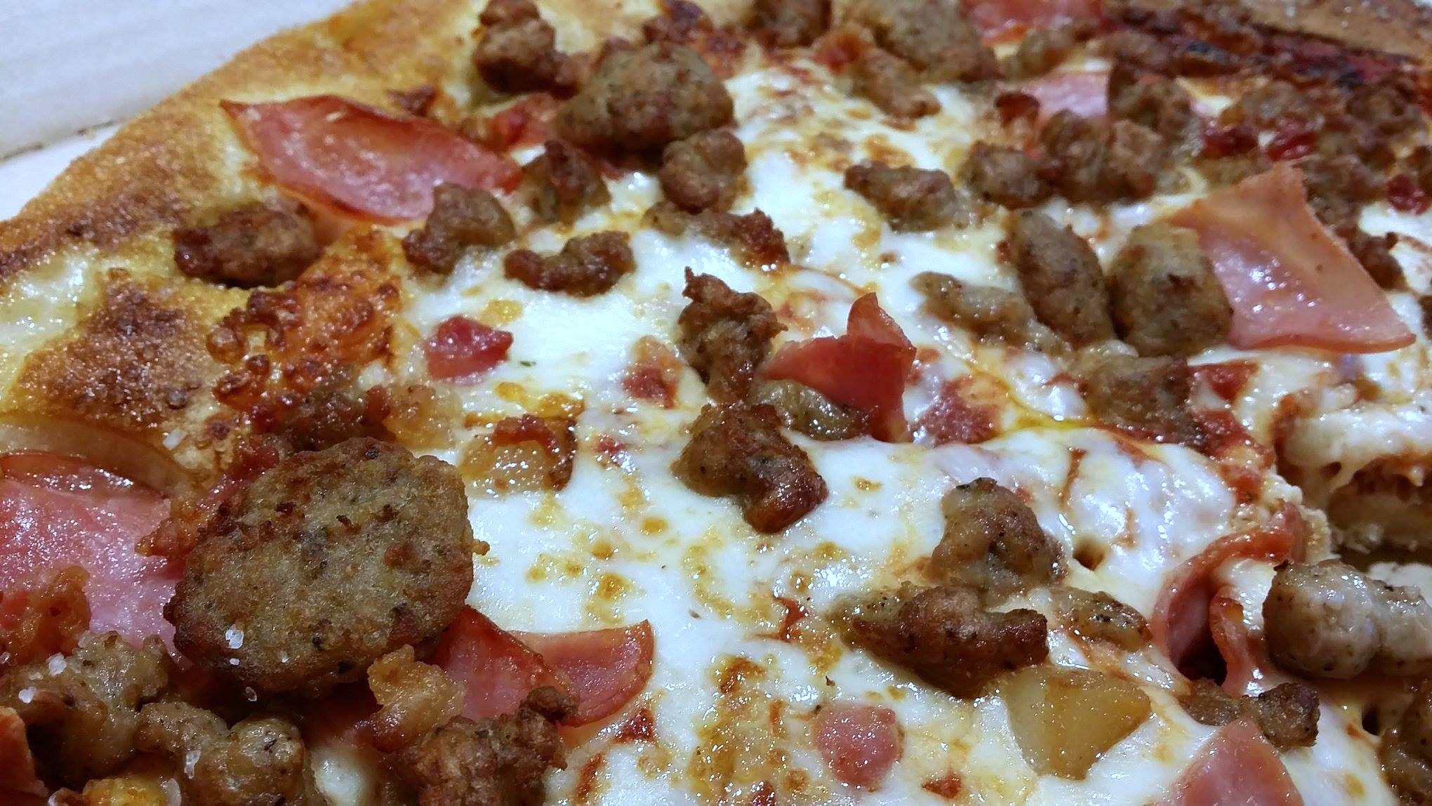 We started with a large pan pizza, added our favorite toppings and decided we should spice up our classic pizza with some “Flavor of Now”. We added classic meatballs to our toppings.