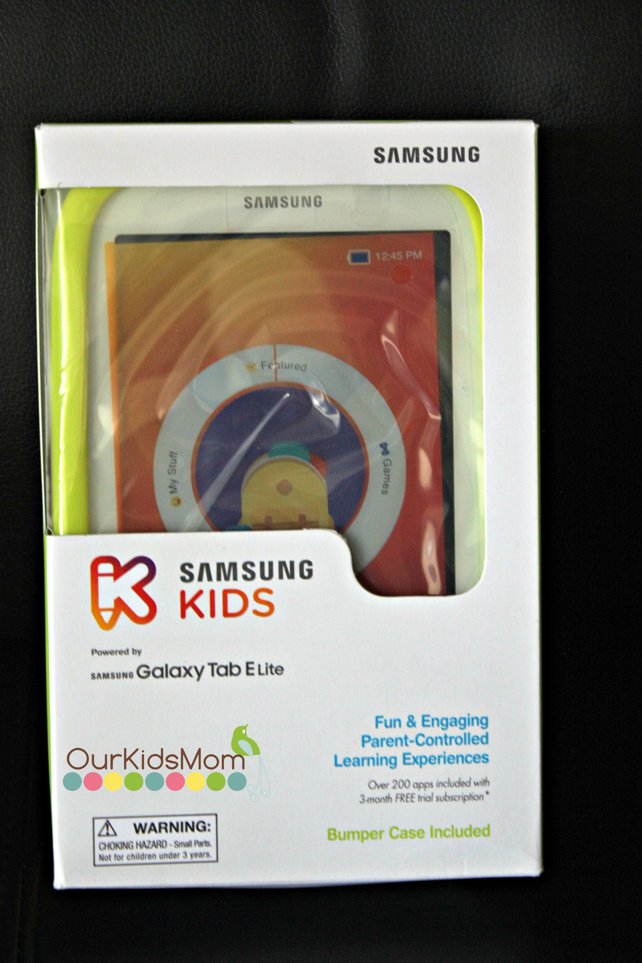 Our family is in the vehicle a lot going back and forth to activities and such, finding some go to things that are small and easy to pack for tiny hands to handle can be hard to find. I was sent the Samsung Kids Galaxy Tab E Lite, the size and design of this little tablet is great for little hands and growing minds.