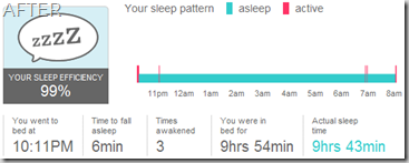 Kaytlin wears a Fitbit that measures her activity and sleep habits among other things. She was kind enough to take a screen shot of her “before” and “after” sleep record to show what a huge difference the Novaform mattress topper has made for her.