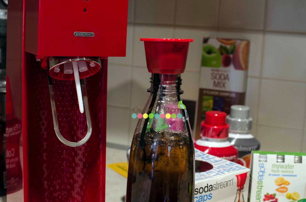 I couldn’t believe how easy they were to use. Place a cap on top of the bottle and give a decent little push downwards. As you can see in the bottle above the flavor starts to come out of the cap slowly and mixes with the soda water.
