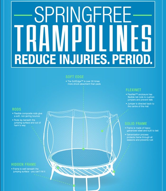 The infographic above shows all of the extra safety features that come with a Springfree Trampoline: