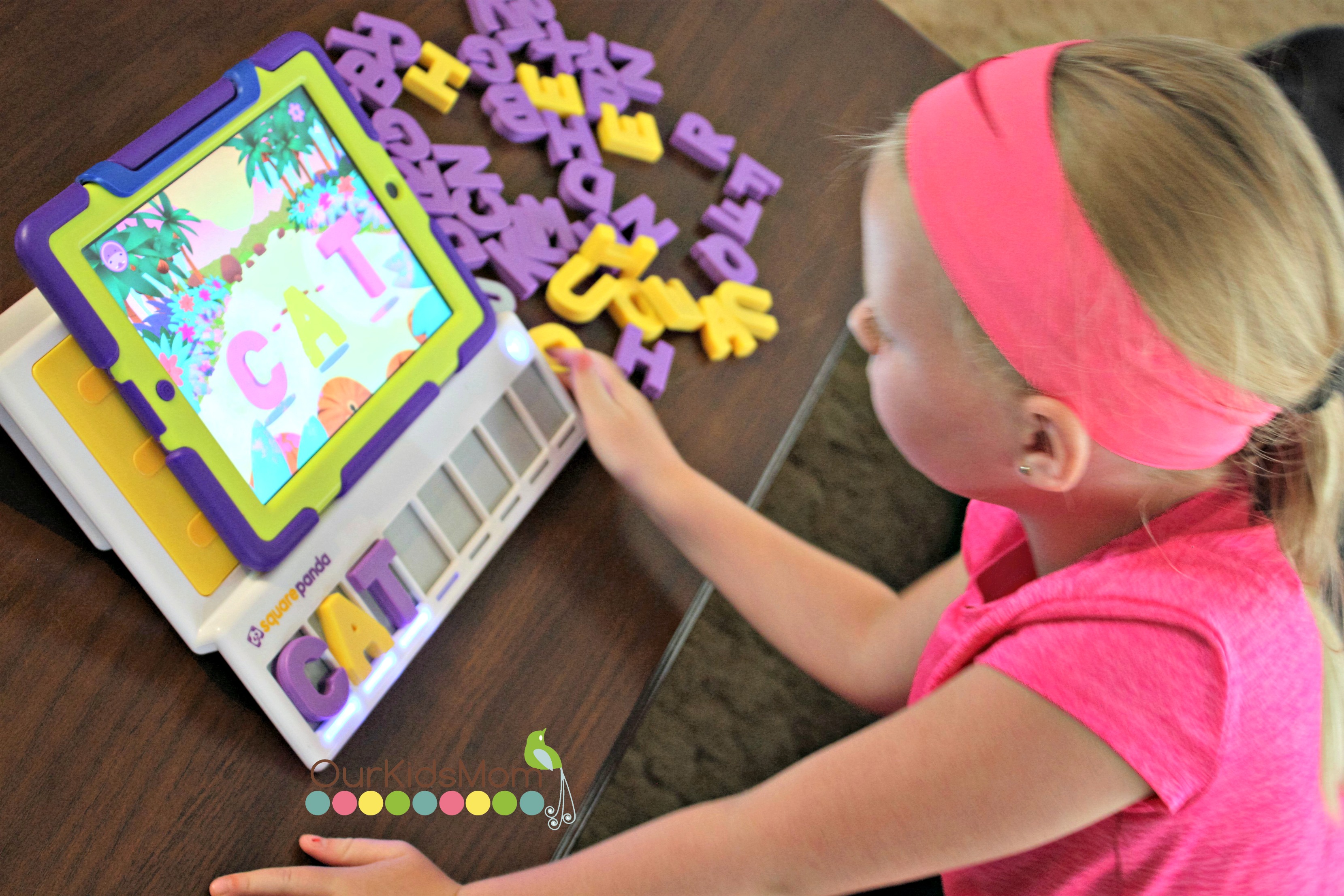 Square Panda is an iPad accessory that turns your iPad into a phonics reading aid. Using Bluetooth when you place letters in the letter box it will send the letters up to your iPad screen and transform your words into a visual picture.
