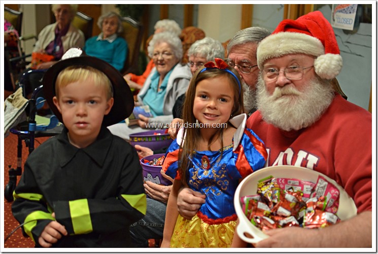 What a really awesome Halloween you had. That is so nice about taking your children to the Home where your Dad lives and he was dressed up as a really good Santa. Your daughter and son had on really nice outfits and the toys you handed out is great.