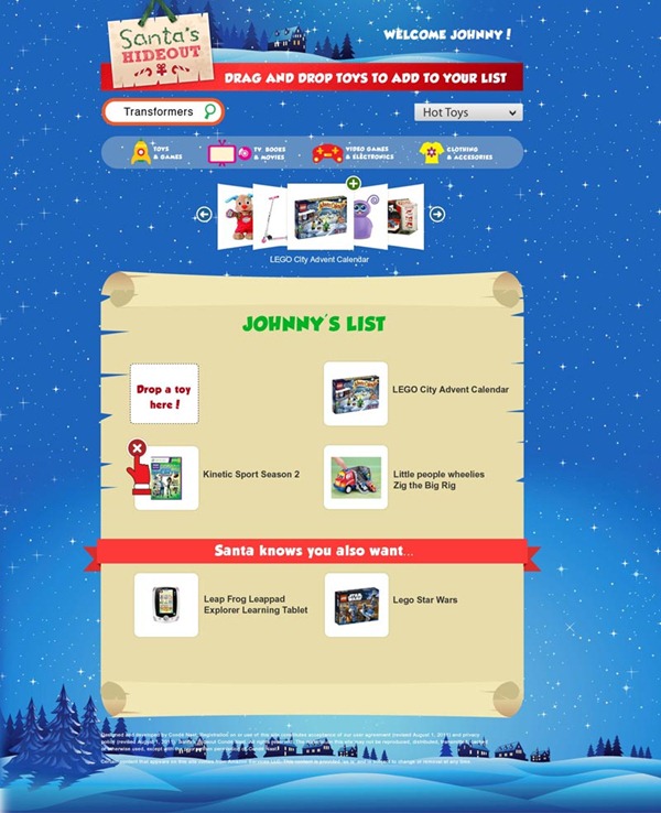 So Mom sets it up, emails the child as Santa and the child makes their Christmas list at Santa’s Hideout. Now friends and family can shop and share (no more duplicate gifts, no more hurt feelings and best yet… no more waiting in the return lines after Christmas!).