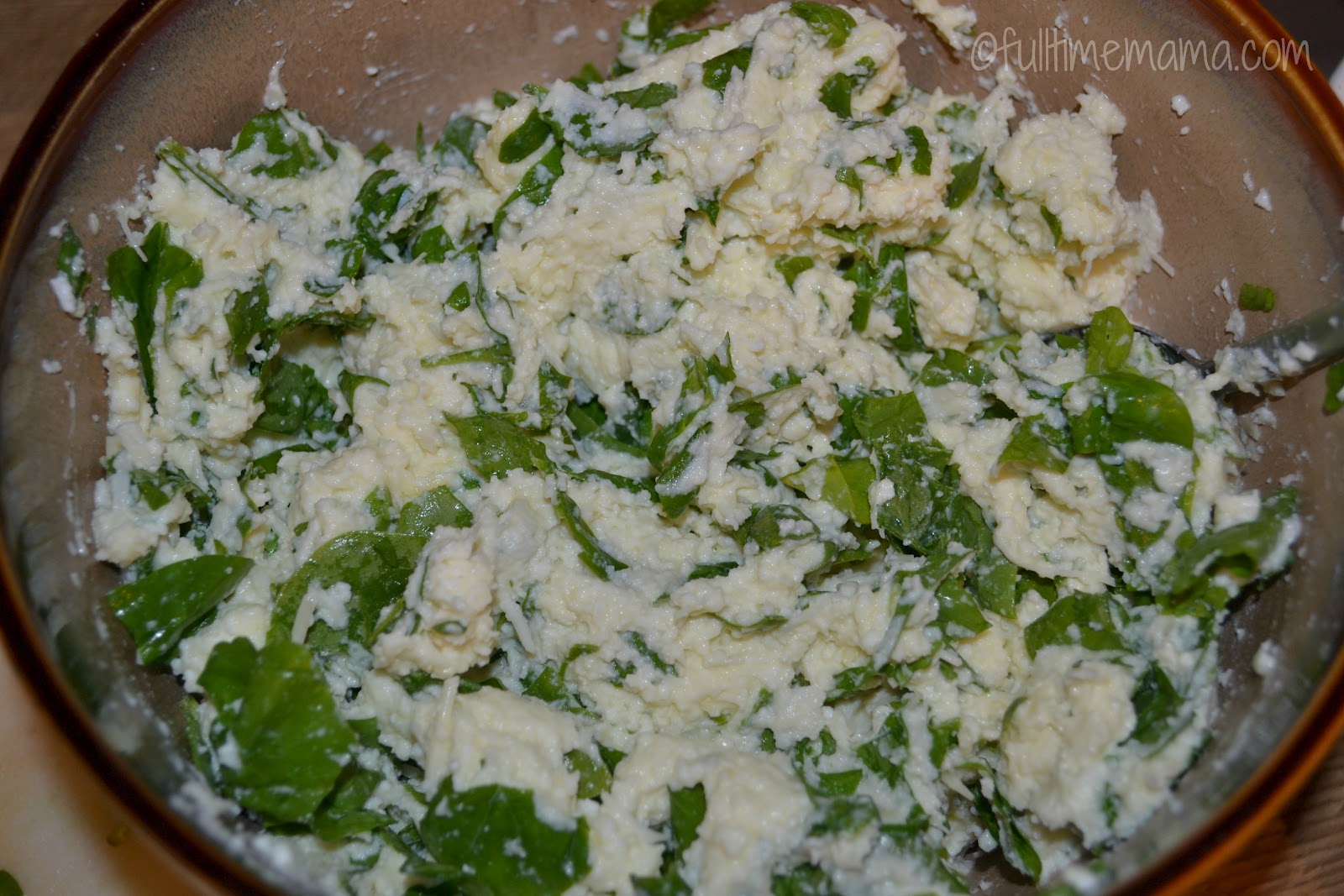 Rinse spinach and chop. Combine spinach, ricotta cheese, 2 cups mozzarella cheese, 1 cup parmesan cheese and eggs in medium bowl.