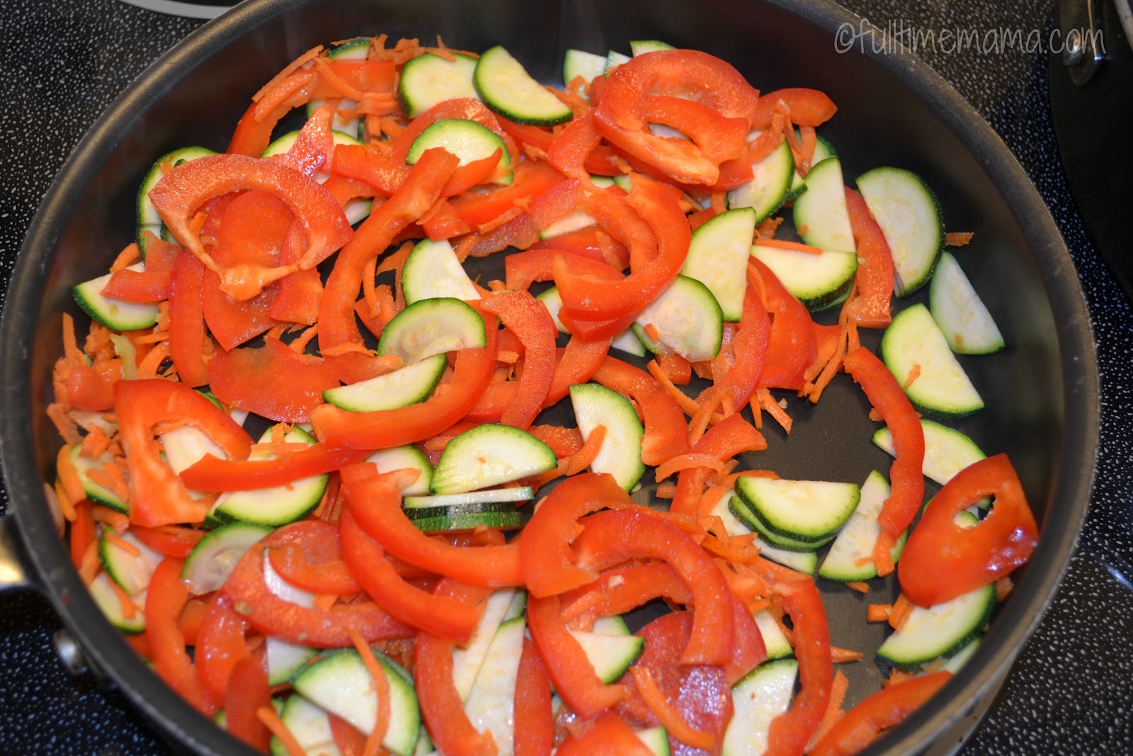 Heat butter in skillet over medium-high heat and cook red pepper, zucchini and carrot, stirring occasionally, until tender (about 4 minutes).